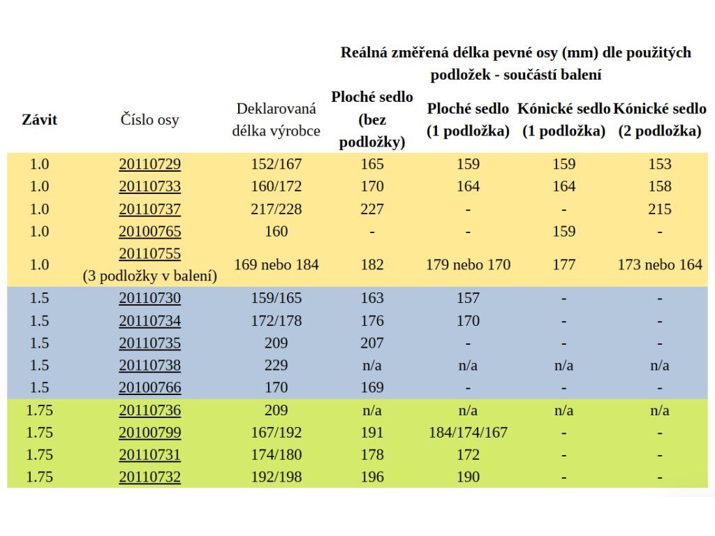 Überblick über THULE-Festachsen-Varianten mit Gewindesteigung 1.0