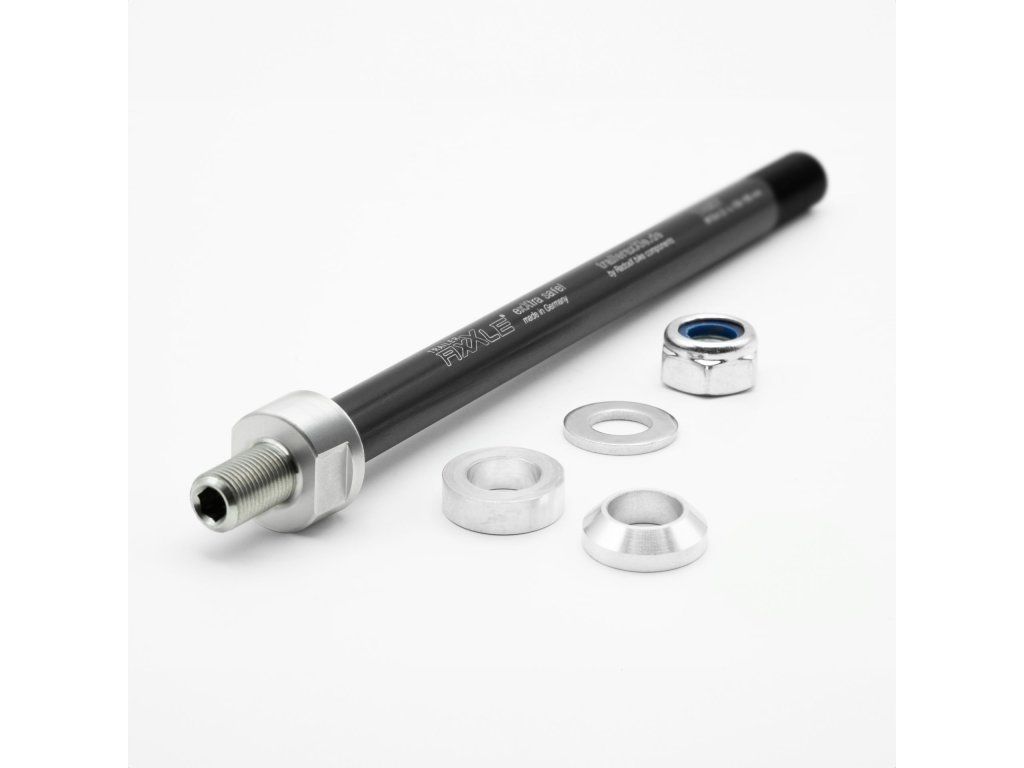 Feste Achse zur Verbindung des Anhängers am Fahrrad (M12 x 1,5) von Marken z. B. THULE, CHARIOT, BURLEY, Croozer, XLC by Croozer, HAMAX und weitere mit einer Gewindesteigung von 1,5.