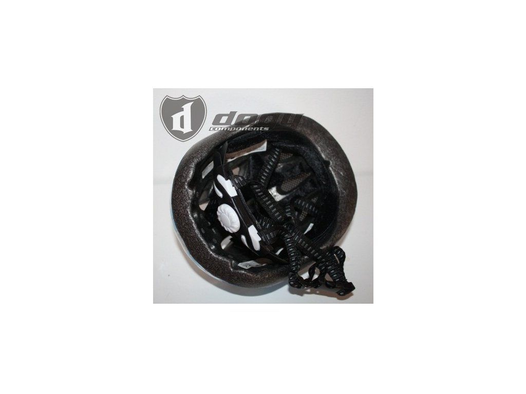 Einfaches System zur Fixierung des Helms am Kopf mittels Drehrad, das den Helm am Kopf festzieht. Eine einfache und leichte Handhabung, die auch Kinder bewältigen können. Durch gegensätzliches Drehen des Drehrads wird der Helm gelöst und lässt sich vom Kopf abnehmen.