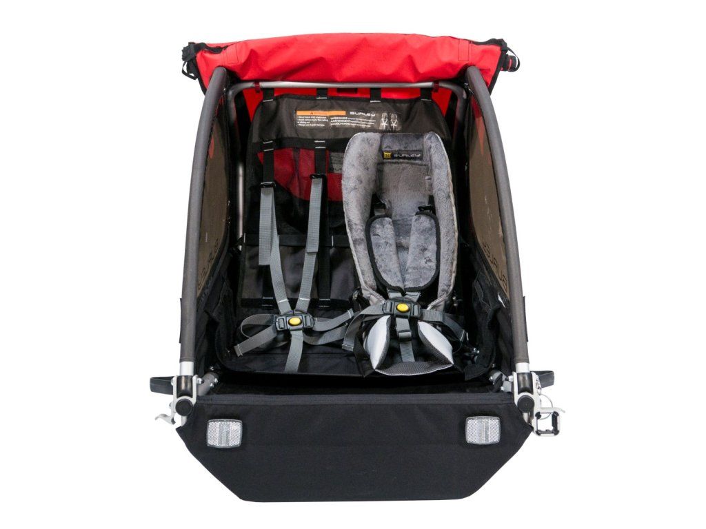 - Mit der Burley-Sitz können auch zwei Kinder nebeneinander fahren, oder ein kleineres in einem Sitz und ein größeres ohne Sitz oder Zwillinge in zwei Sitzen.