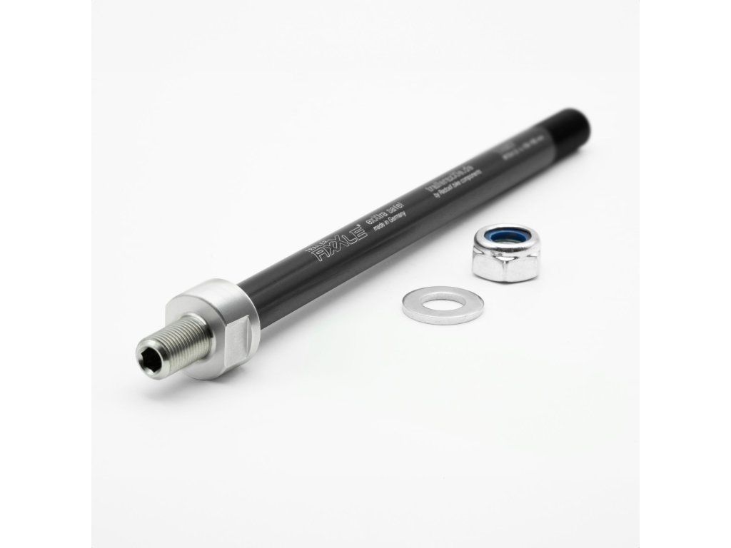 Feste Achse zur Befestigung eines Fahrradanhängers am Fahrrad mit Gewindesteigung 1,5
